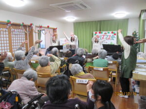 クリスマスにちなんだ歌や体操、読み聞かせ、楽器の演奏など、盛りだくさんの内容でした。