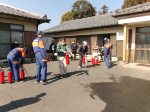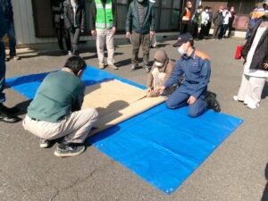 簡易担架の作り方・消火訓練・AED心肺蘇生
